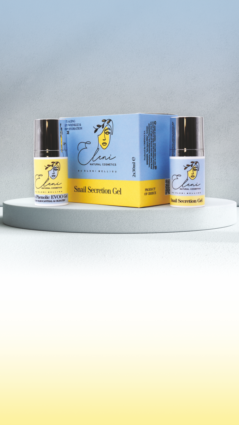 Περιγραφή Προϊόντος: Το καλλυντικό Eleni είναι το πρώτο καλλυντικό που αποτελείται από 2 συνδυαστικά φιαλίδια χωρίς αέρα (airless vials) των οποίων το περιεχόμενο αναμιγνύεται αμέσως πριν από την εφαρμογή στο δέρμα του προσώπου στην κατάλληλη ποσότητα ανάλογα με τον κάθε τύπο επιδερμίδας.